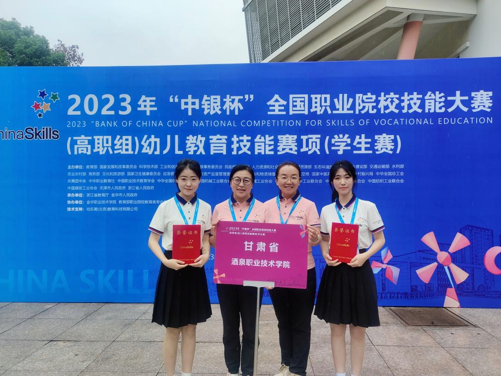 8月19日——8月22日,2023年全国职业院校技能大赛(高职组)幼儿教育技能赛项(学生赛)在金华职业技术学院举行,来自全国59所职业院校的118名优秀学子同台竞技。经过四天的激烈角逐,2020级学前教育专业闫婷、薛春娟组成的参赛队凭借扎实的专业功底与出色的技能展示荣获国赛三等奖。