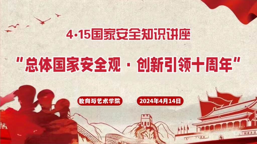2024年是习近平总书记提出总体国家安全观10周年,4月15日是第九个“全民国家安全教育日”。为深入学习贯彻总体国家安全观,切实提高学生国家安全意识,夯实国家安全基础,自觉履行维护国家安全义务,增强学生国家安全责任。4月14日教育与艺术学院特别邀请酒泉市火车站派出所章指导员为全体学生开展“总体国家安全观·创新引领10周年”——4.15国家安全知识讲座。