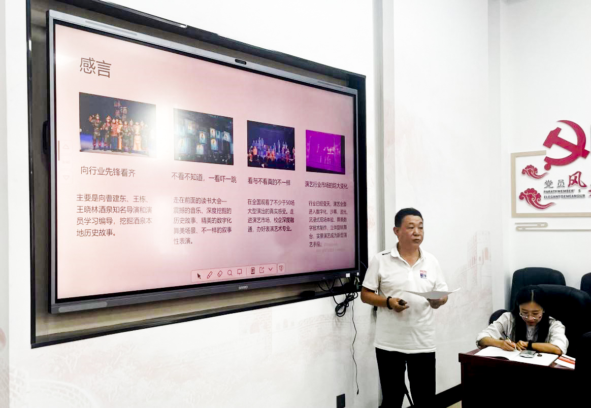 曾鸿斌老师详细讲述了在酒泉市艺蕾艺术学校和敦煌文旅沙州夜市景区运营管理有限公司为期六个月的企业实践历程。期间,他积极投身于《美丽的太阳花》《倾酒入泉》等儿童音乐剧与沉浸式历史剧的创排及演出工作,从而积累了大量实景演出组织与管理的宝贵经验。通过参与多个大型文旅演艺项目,曾老师深切感受到市场对“一专多能”型艺术人才的急切需求。基于此,他提出应在课程体系中增设如《沉浸式与实景演出表演技巧》等特色课程,并强化项目式教学,以此提升学生的实战能力与文化融合能力。