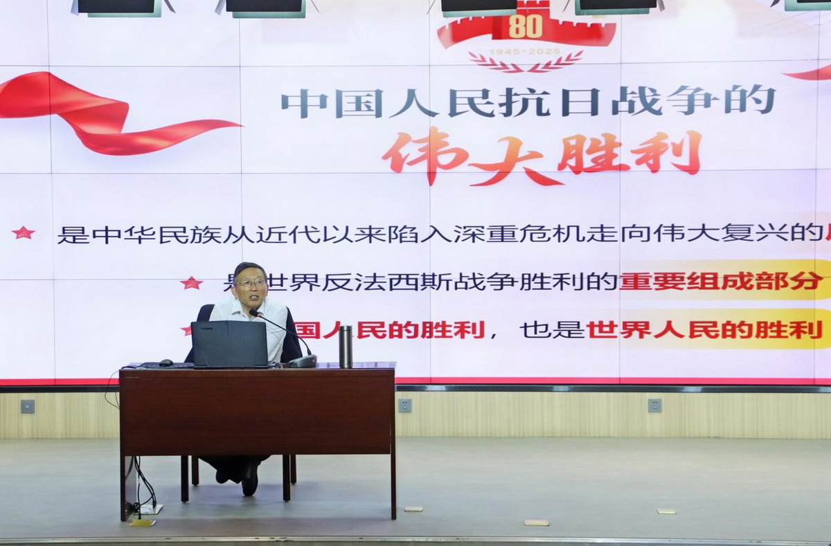9月3日,在纪念中国人民抗日战争暨世界反法西斯战争胜利80周年的重要节点,学院组织全体师生集体观看“九三阅兵”仪式,师生共同见证国家庄严时刻,感受祖国的强盛与繁荣,进一步激发学生铭记历史、缅怀先烈、传承红色基因的责任感与使命感。更以“同上一堂大思政课”为契机,邀请校领导走上讲台,以宽广的视野、鲜活的事例、深入的分析,深刻阐释了新时代的历史使命与青年的责任担当。这堂有深度、有温度、有力度的“大思政课”,有效地引导广大学生积极主动地将个人的理想追求深度融入党和国家的伟大事业当中。