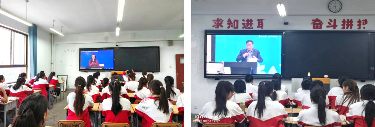 9月1日晚,全体学生集中收看由中宣部、教育部、中央广播电视总台联合制作的《开学第一课》专题节目。节目以“铭记与奋斗”为主题,恰逢中国人民抗日战争暨世界反法西斯战争胜利80周年,通过珍贵历史影像和感人故事讲述,生动再现烽火岁月,弘扬伟大抗战精神。同学们全神贯注,认真记录心得体会,在庄重激昂的氛围中接受了一次深刻的思想洗礼与价值观教育。