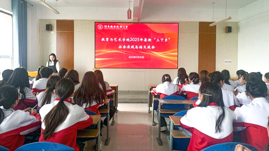 为深化“行走的思政课”育人实效,全面总结暑期社会实践成果,交流实践经验,展示青年学子风采,9月26日,教育与艺术学院在行知楼508教室举办了2025年暑期“三下乡”社会实践总结交流会。学院团委书记贺雯主持会议,各实践团队代表及学生代表共计70余人参加。