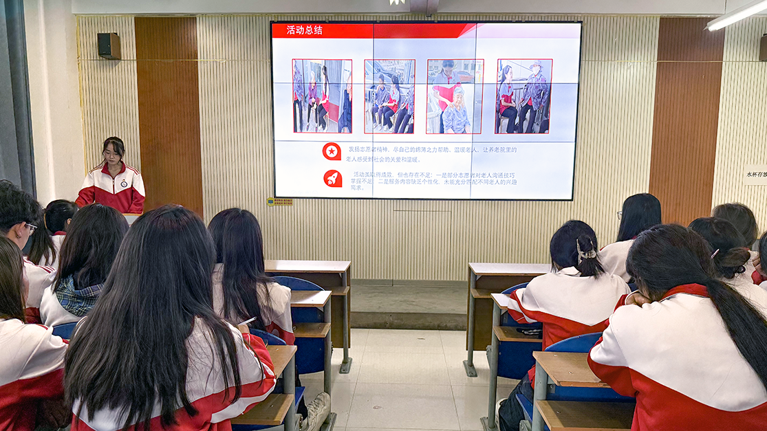 学院团委书记贺雯对大家不畏酷暑、深入基层、服务社会的精神给予了肯定,并强调“三下乡”社会实践活动是青年学生了解国情、增长才干、砥砺品格的重要途径,也是学院落实立德树人根本任务、强化实践育人的关键环节。实践内容涵盖了乡村教育支持、社区志愿服务、公益课堂服务、美育浸润行动、传统文化调研、红色基因寻访等多个领域。成果展示与分享环节中,多支实践团队的代表依次上台,通过PPT讲解、视频展播、实物展示等多种形式,生动详实地汇报了实践历程、主要成果与深刻感悟。各团队分享的鲜活事例和真挚体会,引发了现场师生的强烈共鸣。