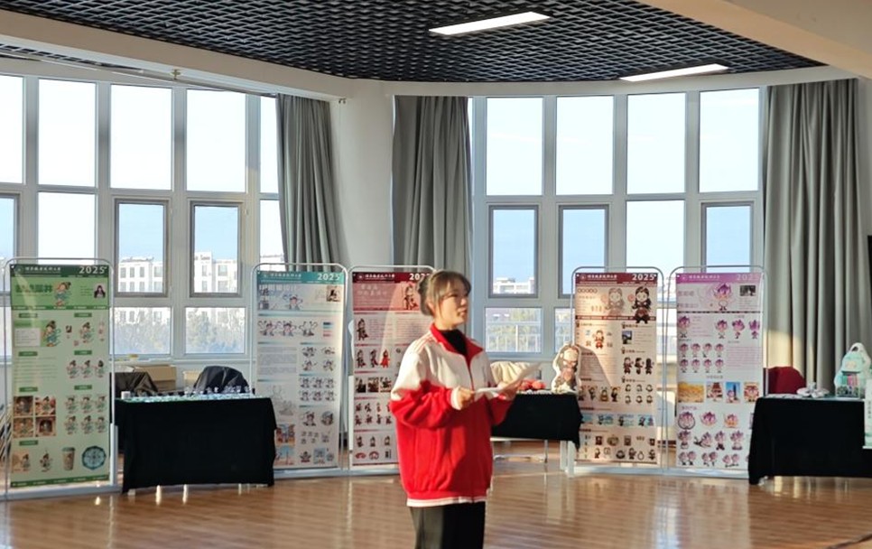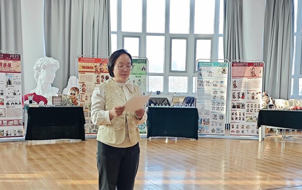 活动在浓厚的艺术氛围中拉开序幕。学院副院长于芳发表热情洋溢的致辞,对到场来宾表示诚挚欢迎,向精心筹备展览的师生致以衷心感谢。随后,设计系学生代表23级艺术设计班王瑞琪分享创作心得:“本次参展的艺术设计专业毕业设计作品从灵感迸发、素材搜集,到反复推敲打磨,直至最终成型,每一步都凝聚着我们艺术设计毕业班的心血与热爱。创作过程中,同学们相互切磋、彼此启发,不仅提升了专业技能,更学会了倾听与包容,收获了宝贵的成长体验。”