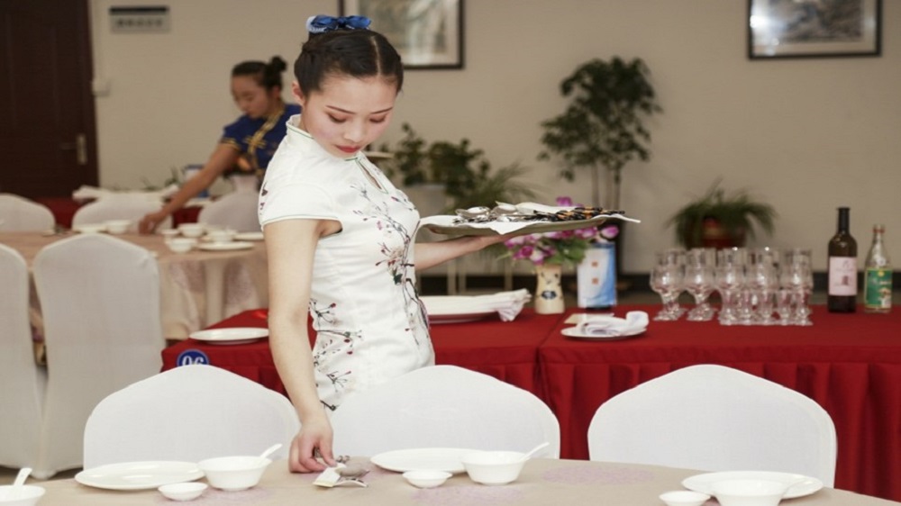 中餐实训室建成于2009年,经过多年建设,已成为酒店管理与数字化运营专业人才培养的重要基地。是酒店管理专业开展中餐服务技能教学与实践的主要场所。实训室按照中餐服务技能教学与实训需求设计与建造,空间布局合理,学生操作方便。配备了餐桌、餐椅、餐具等中餐服务技能训练的必需品,设施设备布局合理、数量充足。实训室还配有多媒体教学设备,可容纳一个班的学生同时在内开展实践教学。中餐实训室目前开展的实训项目主要有:托盘、斟酒、摆台、席间服务等。