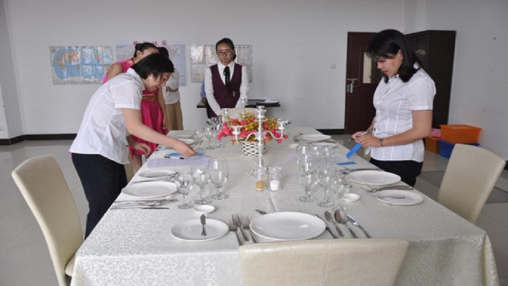 校内有中餐实训室、西餐实训室、宴会实训室、调酒工艺实训室、茶艺实训室等5个实训室。