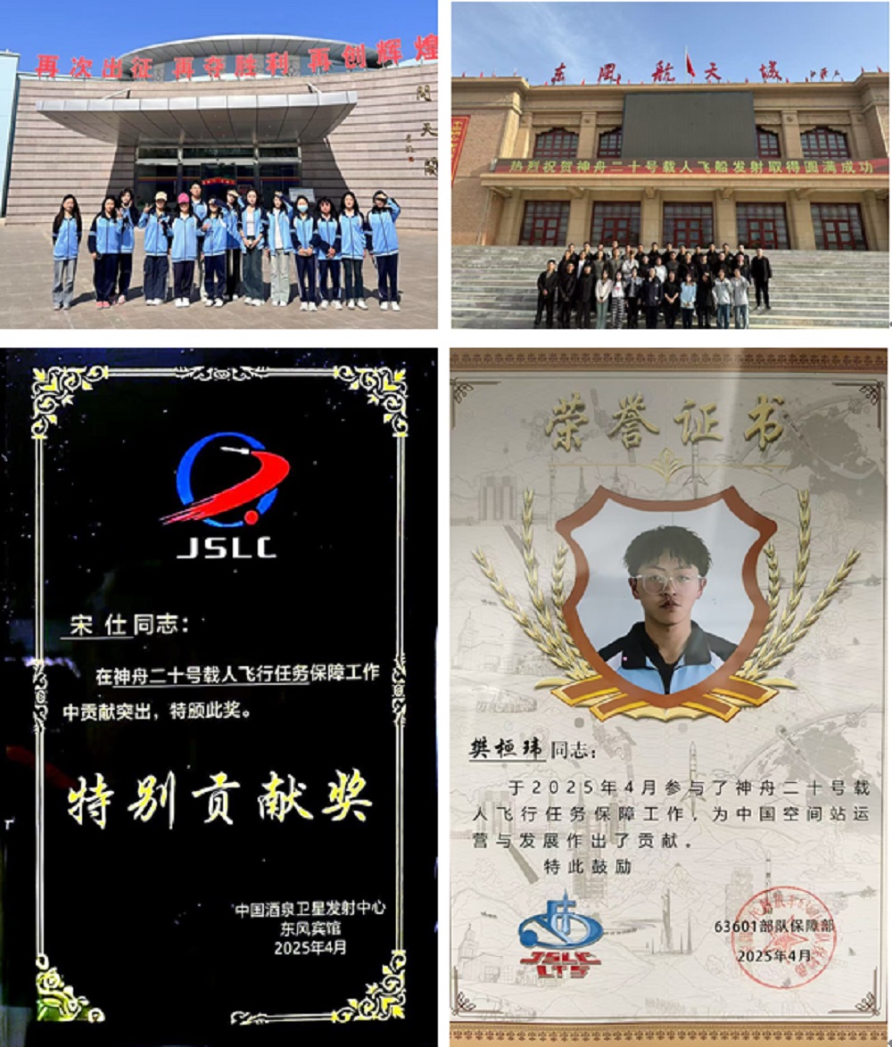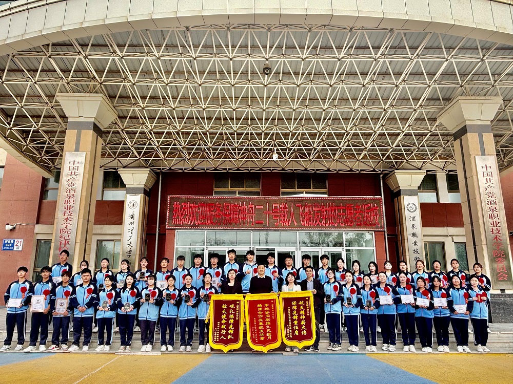 在神舟二十号载人航天任务中,我院志愿者主要承担餐饮保障、观礼引导、科普讲解等工作。在东风宾馆后厨,志愿者严格遵循航天级食安标准,24小时待命应对突发需求,以精准协作保障5000余人次供餐;在酒泉文旅观礼团队跟车讲解过程中,志愿者向2000余名游客科普航天知识,组织多场观礼引导服务。