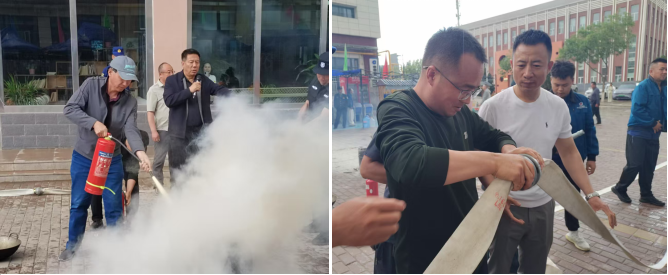在灭火器实操环节,创新创业学院(科技园公司)所属工作人员上手操作,掌握“一提、二拔、三握、四压”四步技巧;安保团队演练消防水带快速连接,确保突发情况下能高效配合专业消防力量。