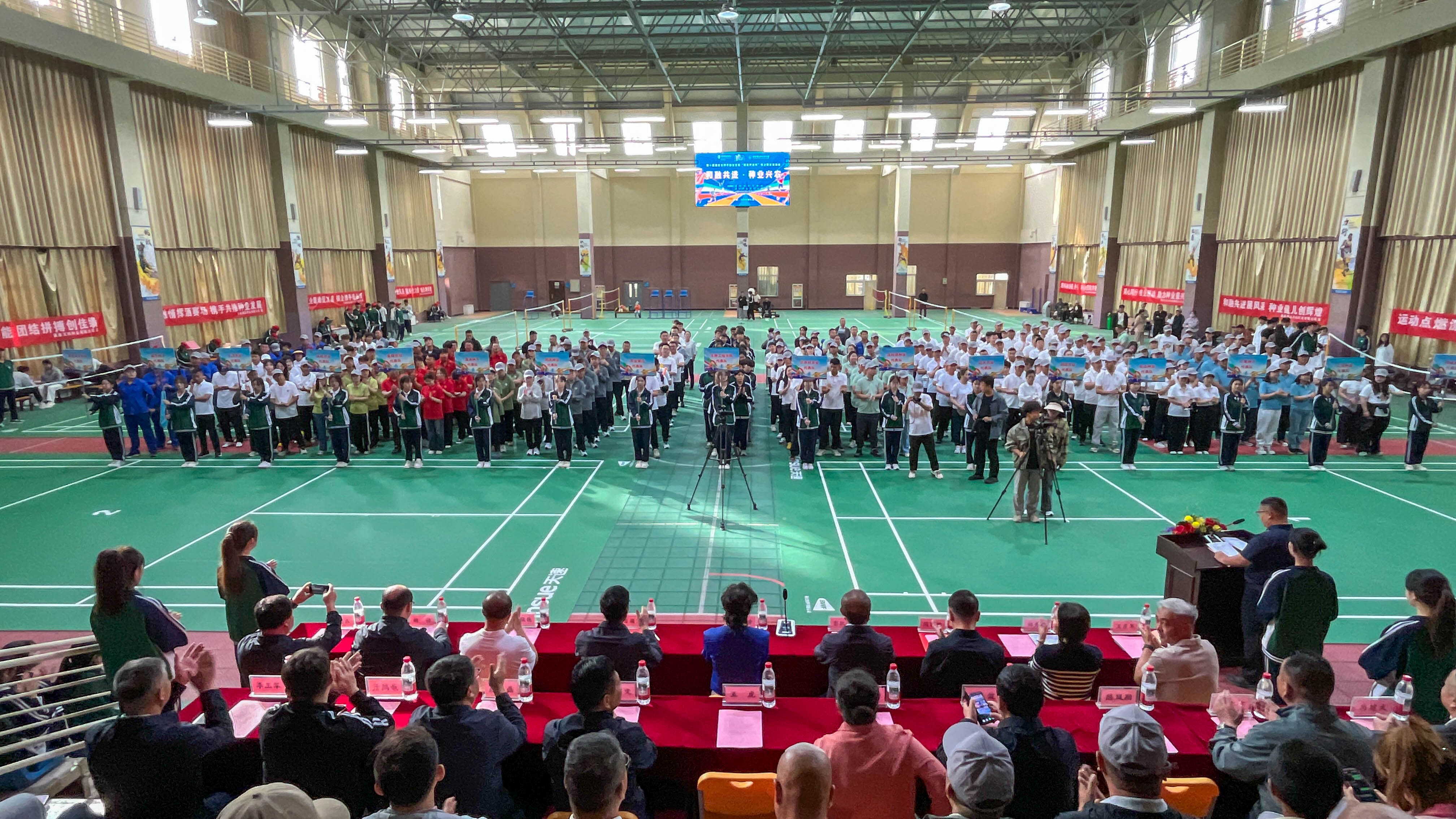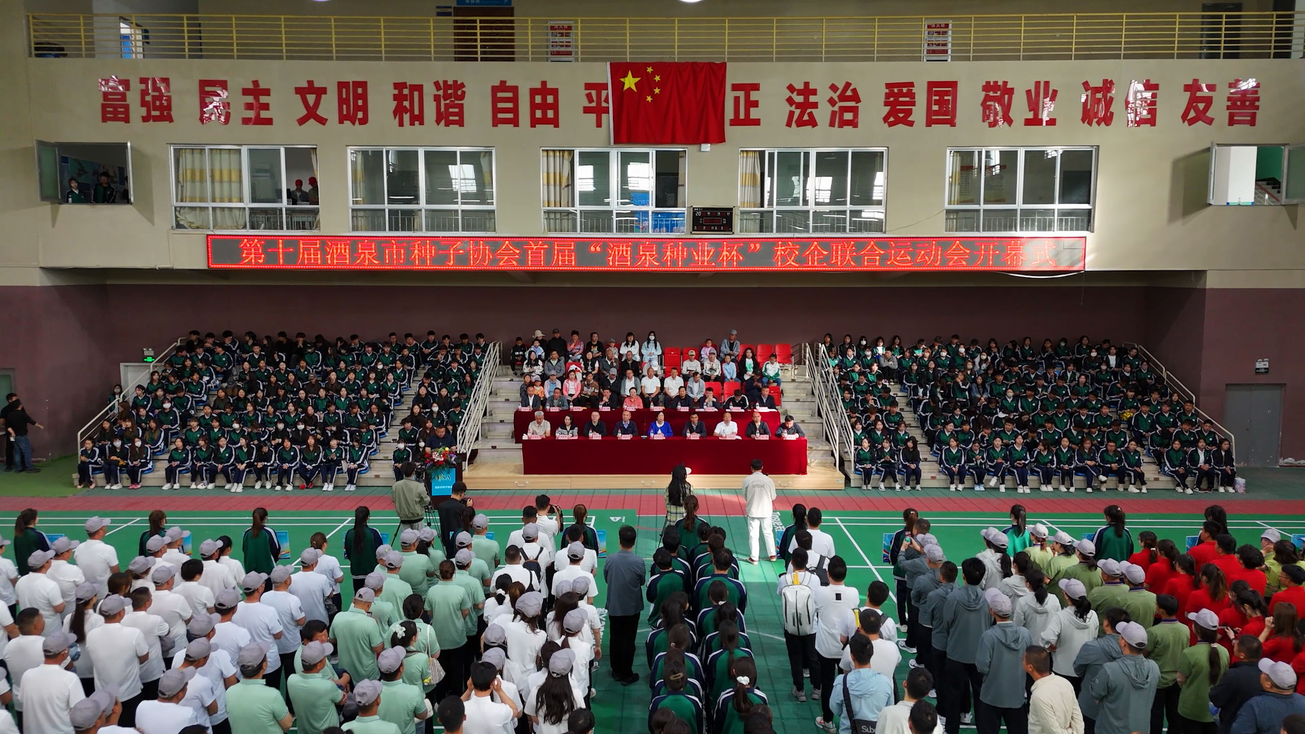 5月24日上午,由酒泉市种子协会与酒泉职业技术大学联合主办的首届“酒泉种业杯”校企联合运动会在该校体育馆隆重开幕。酒泉市委统战部副部长、市工商联党组书记、常务副主席刘金香,酒泉市农业农村局党组成员、副局长万海宏,酒泉职业技术大学党委委员、副校长杨洁,中国农业银行酒泉分行副行长闫福荣等政企单位领导及师生代表500多人齐聚一堂,共同见证这一深化产教融合、促进校企联动的体育盛会。