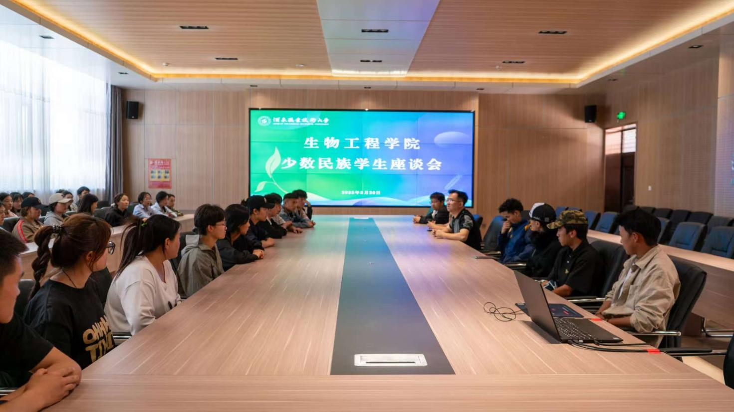 为深入贯彻新时代党的民族工作方针,切实关心在校少数民族学生成长发展,生物工程学院于5月30日在弘毅楼会议室成功召开了主题为“铸牢中华民族共同体意识,深化少数民族学生关心关爱”的座谈会。学院副院长庞捷主持会议并与来自多个少数民族的学生代表亲切交流。
