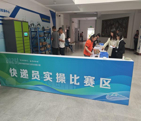 院系动态 > 正文5月28日,酒泉职业技术大学经世楼内气氛热烈,由酒泉市邮政管理局、市总工会、市人力资源社会保障局主办、经济管理学院承办的"建功新时代,奋进新征程"全市邮政快递行业职业技能大赛在此隆重开赛。来自全市5县1区的邮政、顺丰、极兔、京东等8家品牌企业的33名一线从业者齐聚一堂,在理论比拼与实操对决中展现新时代"小蜜蜂"的专业风采。