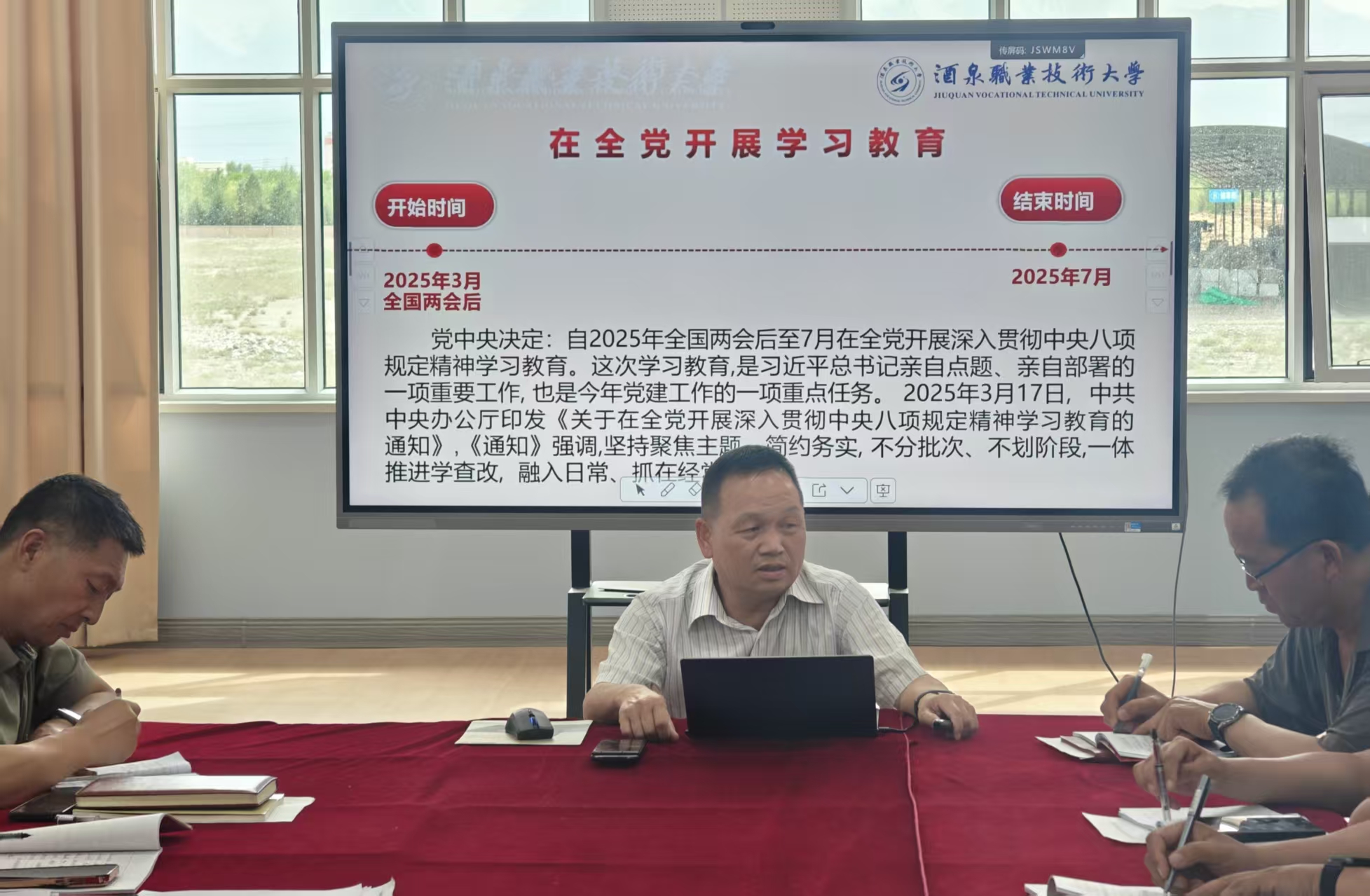2025年6月17日,体育与健康学院在天健馆二楼会议室召开专题党课,学校党委副书记王立智教授以“锲而不舍落实中央八项规定,扎实推进党的作风建设走深走实”为主题,为全体师生党员讲授了一堂思想深刻、案例鲜活的党课。此次党课旨在巩固深化党纪学习教育成果,进一步强化党员纪律意识,为学院落实立德树人根本任务及长远发展提供作风保障。