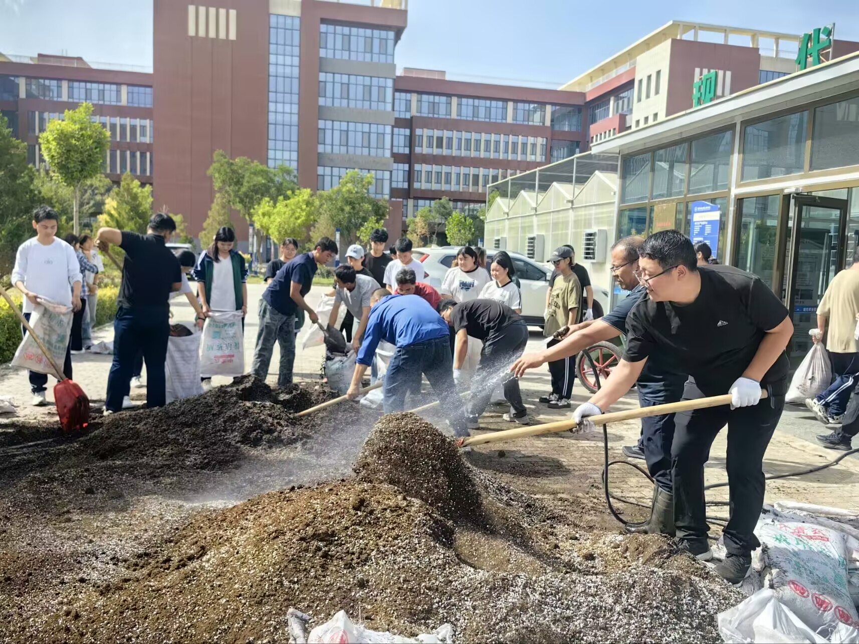 活动主要包括基质搅拌、基质填充和蔬菜苗移栽。整个过程中,师生们分工明确、配合默契。教师向学生讲解蔬菜种植原理、基质配比的科学依据,将专业知识融入劳动实践;学生们也积极提问,在动手操作中加深对专业领域的认知。