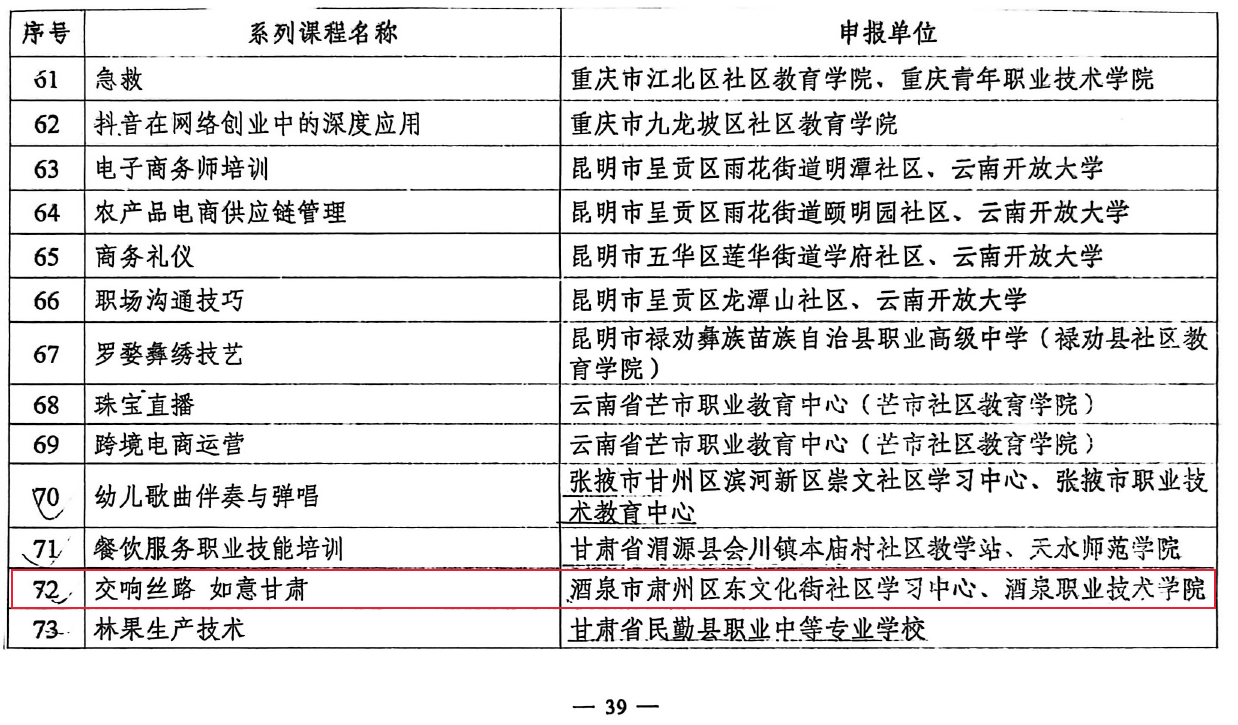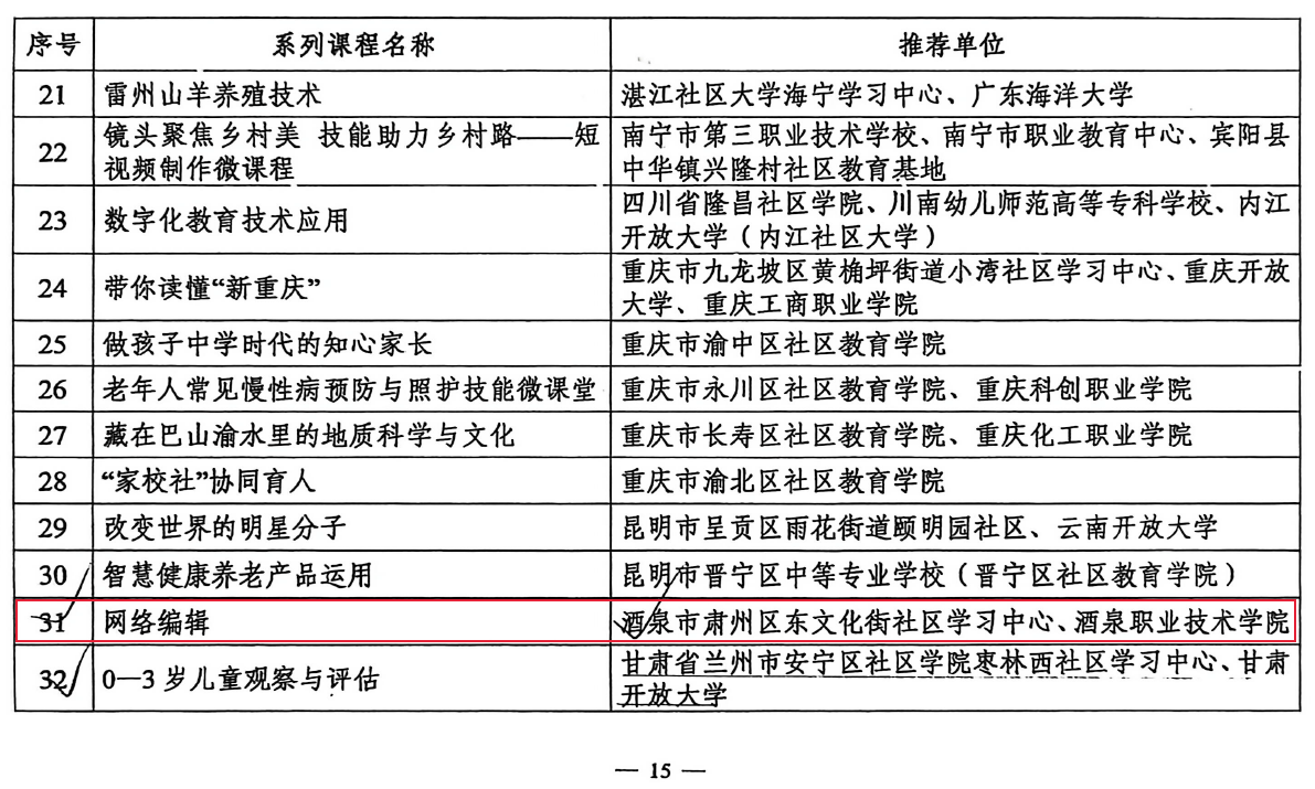 酒泉职业技术大学《网络编辑》等2门课程 入选教育部县域社区学习中心品牌课程