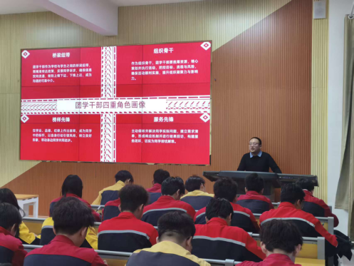 开班仪式结束后,刘明副院长以“新时代团学干部的责任与使命”为题进行讲授。他围绕“我是谁”“我要做什么”“我需要什么能力”“我该怎么做”四个方面,系统阐述了新时代团学骨干应有的角色定位、核心职责、能力素养与实