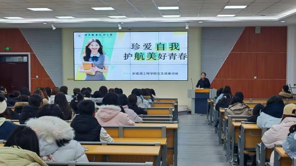 2025年11月26日晚,在行知楼东阶梯教室新能源工程学院组织开展“珍爱自我·护航美好青春”女生健康专题讲座。讲座特邀任艳萍副教授担任主讲,活动聚焦女生身心健康,吸引了全院100余名学生参与。