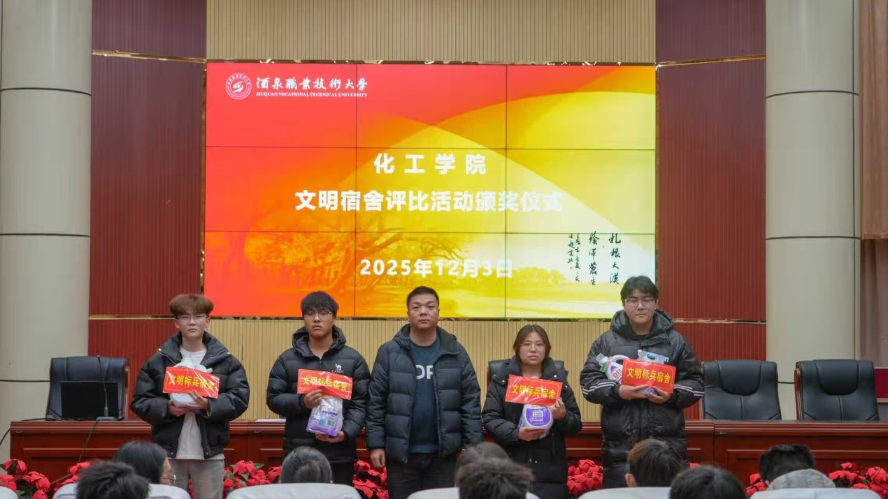 12月3日,化工学院“文明宿舍”评比颁奖仪式在逸夫报告厅顺利举办。副院长邢建伟出席活动,班主任代表、学生代表及获奖宿舍成员等共计100余人参加。
