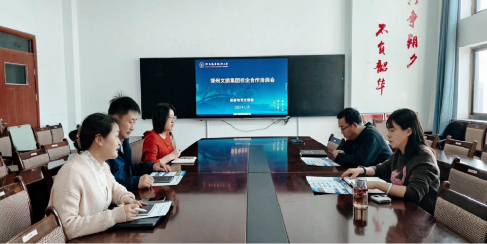 学院副院长杨蕊肇对企业一行表示热烈欢迎,强调学院 始终以服务行业发展为导向,高度重视与优质文旅企业的深 度合作,建议建立“实习-就业”一体化通道,为学生提供 岗位见习、岗位实习、正式就业的阶梯式发展平台。副院长 董轩详细介绍了学院专业建设成果,重点阐述了旅游管理、 研学旅行管理与服务专业的人才培养模式,包括课程体系与 行业标准对接、校内外实训基地建设、“双师型”师资队伍 培育等方面的优势,提出可围绕订单培养、实训基地共建、 研学产品联合研发等方向展开合作,明确后续将组建专项对 接小组,细化合作方案。