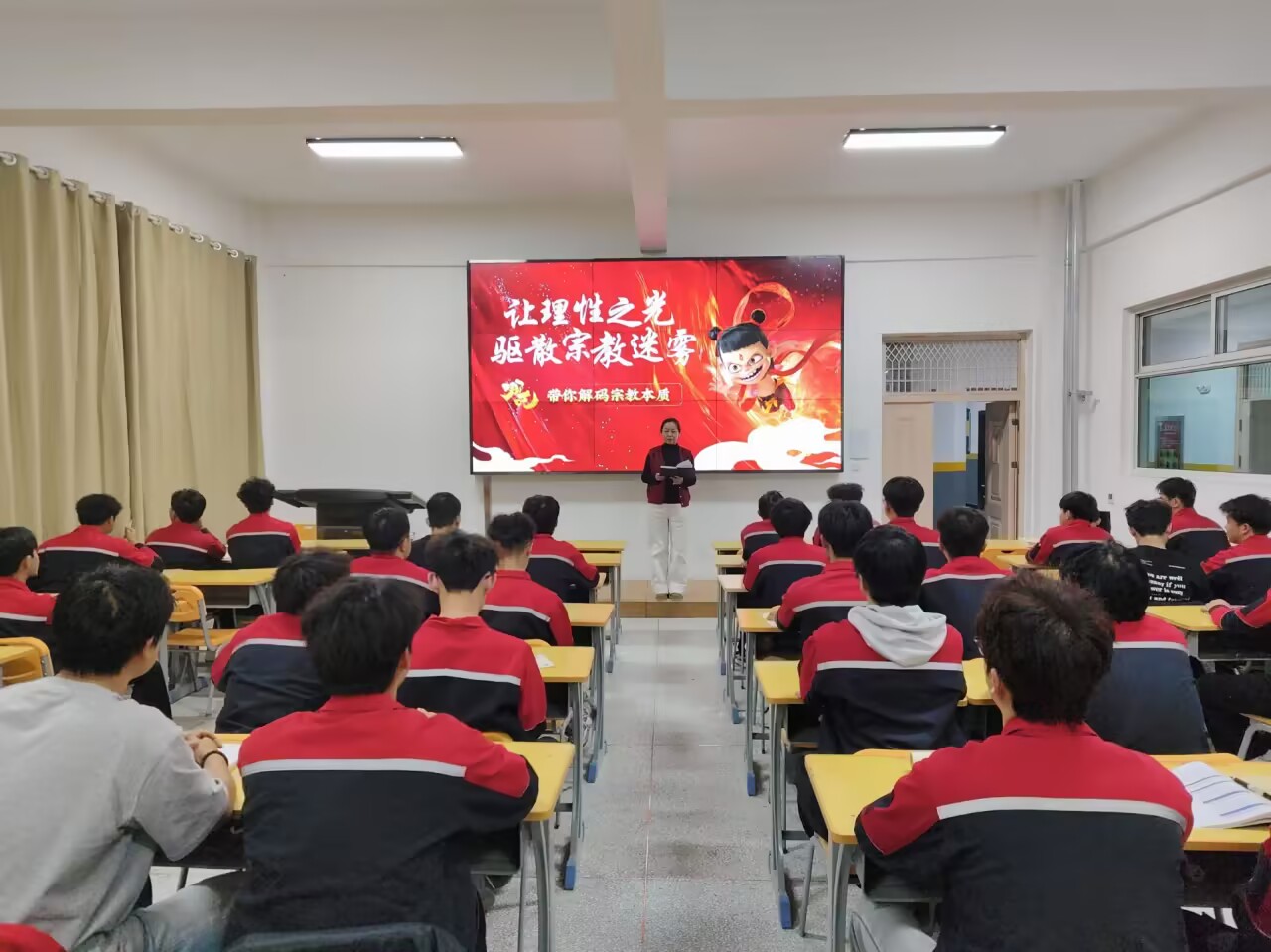3月25日晚,各班级召开主题班会,班主任围绕民族宗教相关法律法规、党的民族宗教工作基本方针等内容,结合动画素材与PPT课件,向学生解读民族平等、团结、互助、和谐的基本方针,教育引导学生了解非法宗教的危害,增强法治观念。