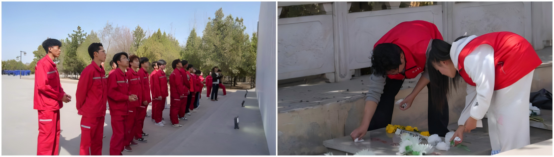 仪式结束后,全体人员依次瞻仰革命烈士纪念碑并敬献白花。在烈士墓区,师生分组对墓碑进行清扫,清除落叶杂物,以实际行动表达对先烈的崇敬之情。
