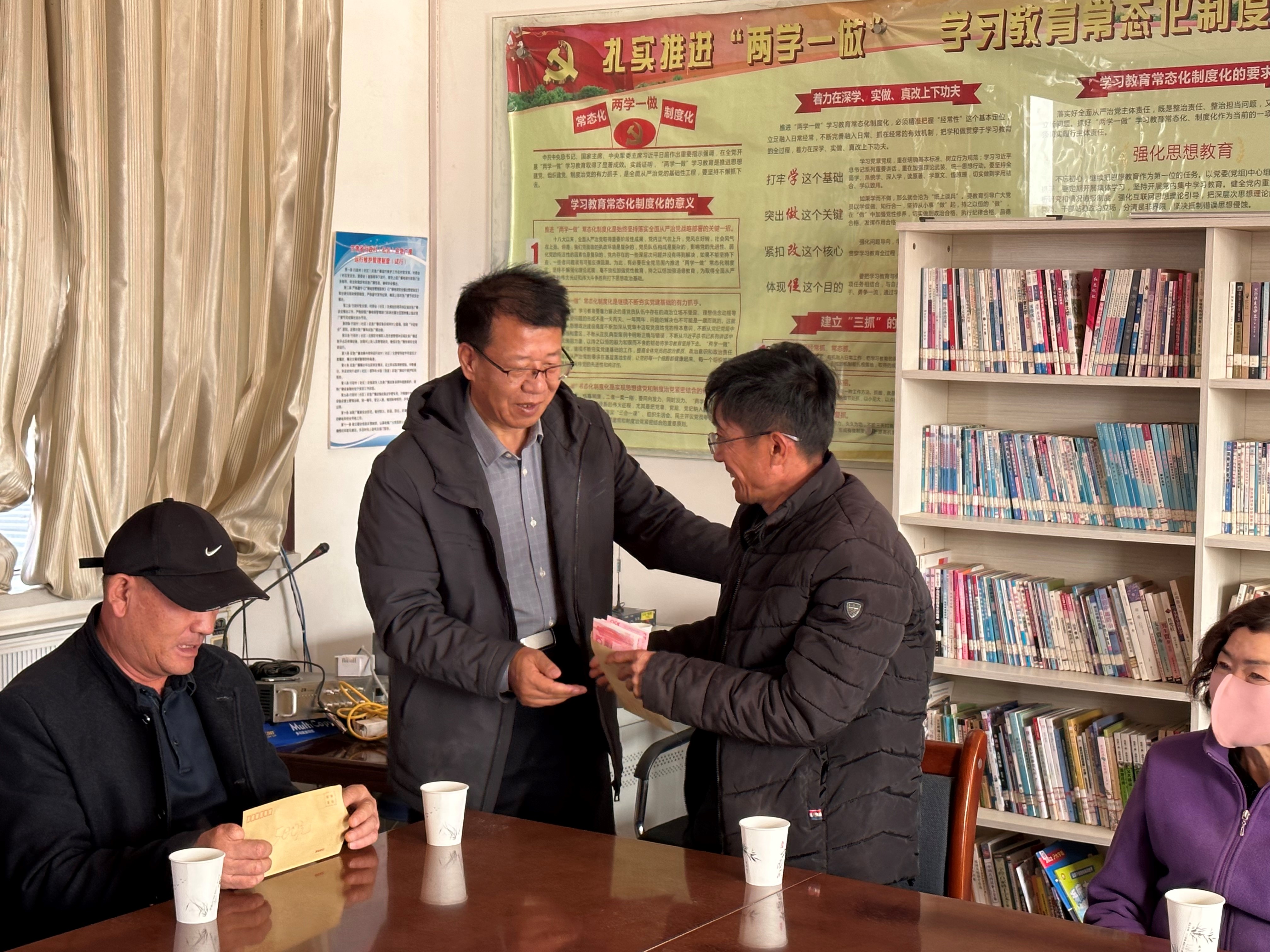 2024年11月22日,酒泉职业技术学院党委委员、副校长王金明一行赴乡村振兴帮扶点--果园镇丁家闸村、小坝沟村对因病致贫越冬困难户进行慰问。
