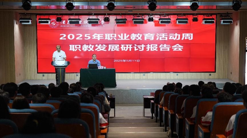 为深入学习贯彻党的二十届三中全会精神和习近平总书记关于职业教育的重要指示批示精神,积极落实《教育部等九部门关于办好2025年职业教育活动周的通知》等相关要求。2025年5月11日,酒泉职业技术大学2025年“职业教育活动周”首日活动在弘毅楼闻道厅举行。活动以 “一技在手,一生无忧”为主题,特别邀请职教专家、学校党委副书记、校长许军教授,围绕学习贯彻全国全省教育大会精神,聚焦职业教育体系建设改革,对《教育强国建设规划纲要(2024 - 2035年)》进行深入解读。活动由党委委员、副校长杨洁主持。