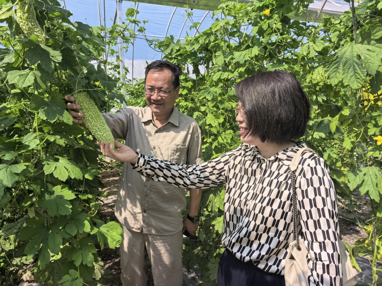 酒泉职业技术大学生物工程学院在11号温室引育了2个番茄新品种,“润心甜”与“多可5号”因果型小巧、糖度高、风味浓郁,适合鲜食及高端市场,受到了观摩嘉宾的一致好评。魏韡指出,结合学校在设施农业、智慧农业等领域的科研优势,提出“产学研协同助推戈壁农业提质增效”的倡议,强调生物工程学院应立足区域特色,为戈壁生态农业提供人才支撑与技术创新支持。
