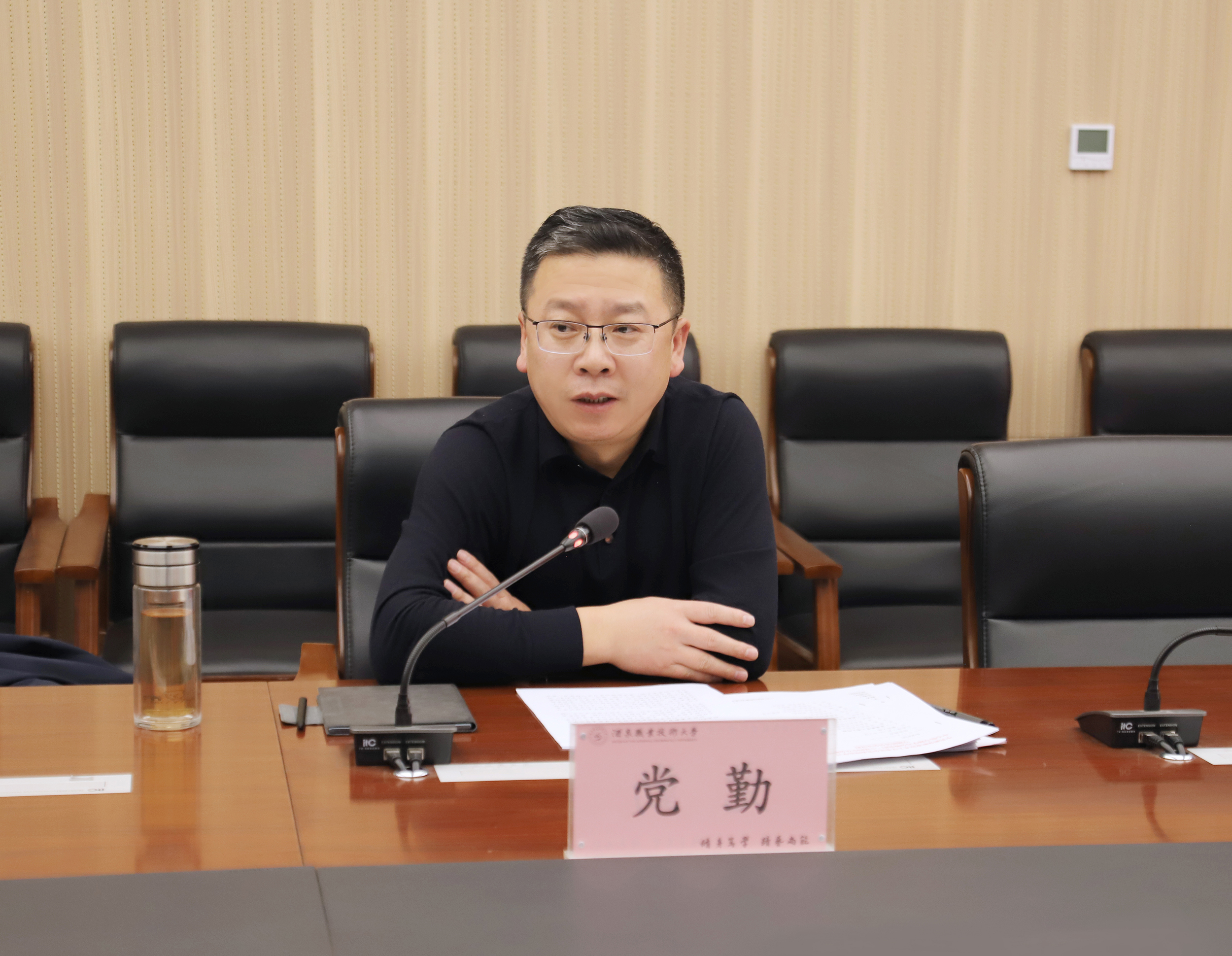 2025年11月25日,学校召开党委理论学习中心组专题学习会暨党的二十届四中全会精神专题研讨会。省委教育工委列席旁听第五工作组组长、省委教育工委委员、省教育厅党组成员、副厅长党勤一行列席旁听。党委书记易志军主持会议。学校党委领导班子成员参加会议,各部门负责人列席会议。