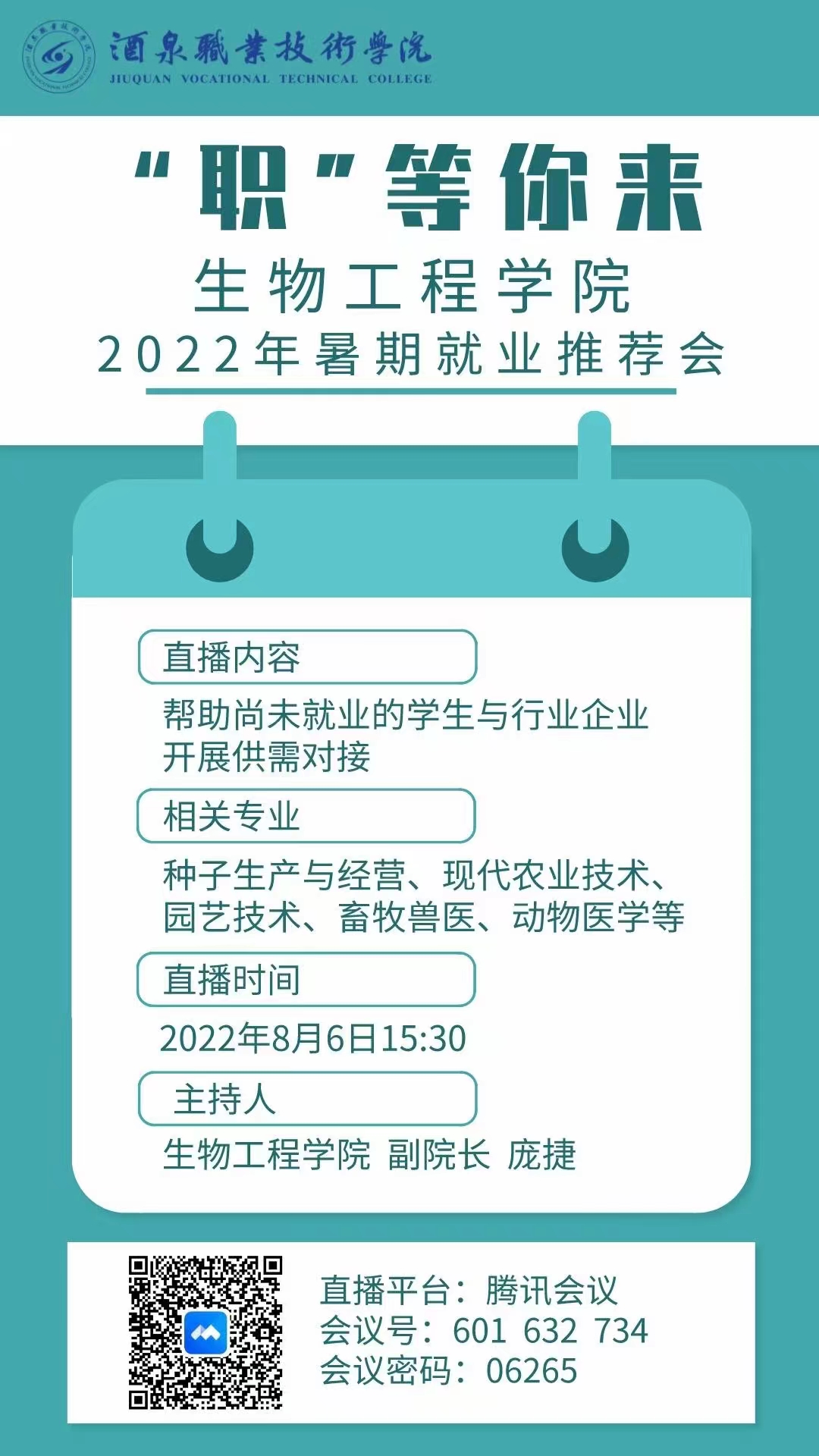 职等你来丨生物工程学院2022年暑期就业推荐会