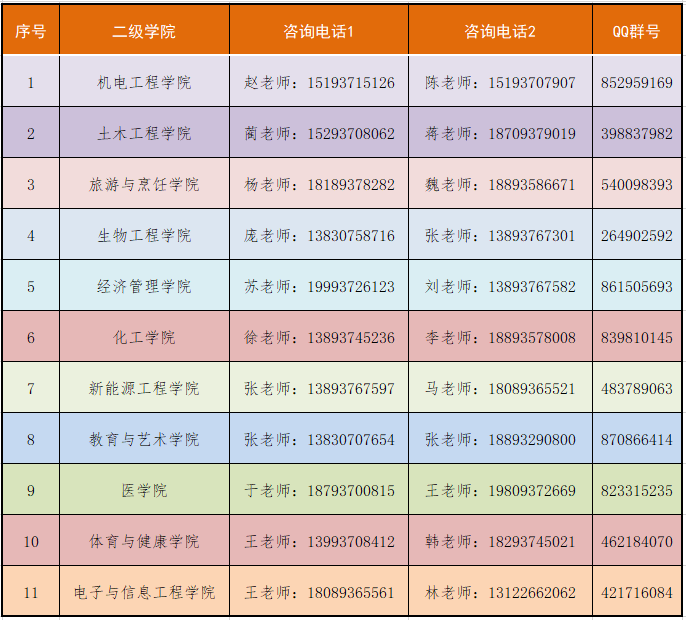 各二级学院招生宣传咨询QQ群:
