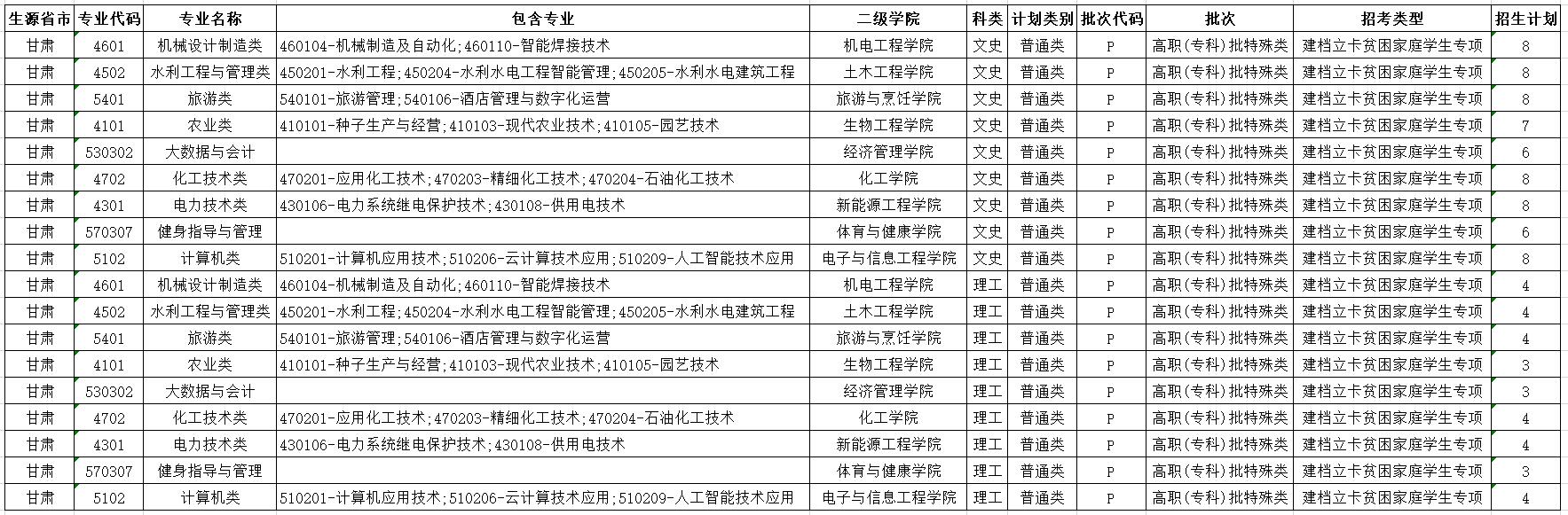 酒泉职业技术学院2023年建档立卡贫困家庭学生专项招生计划