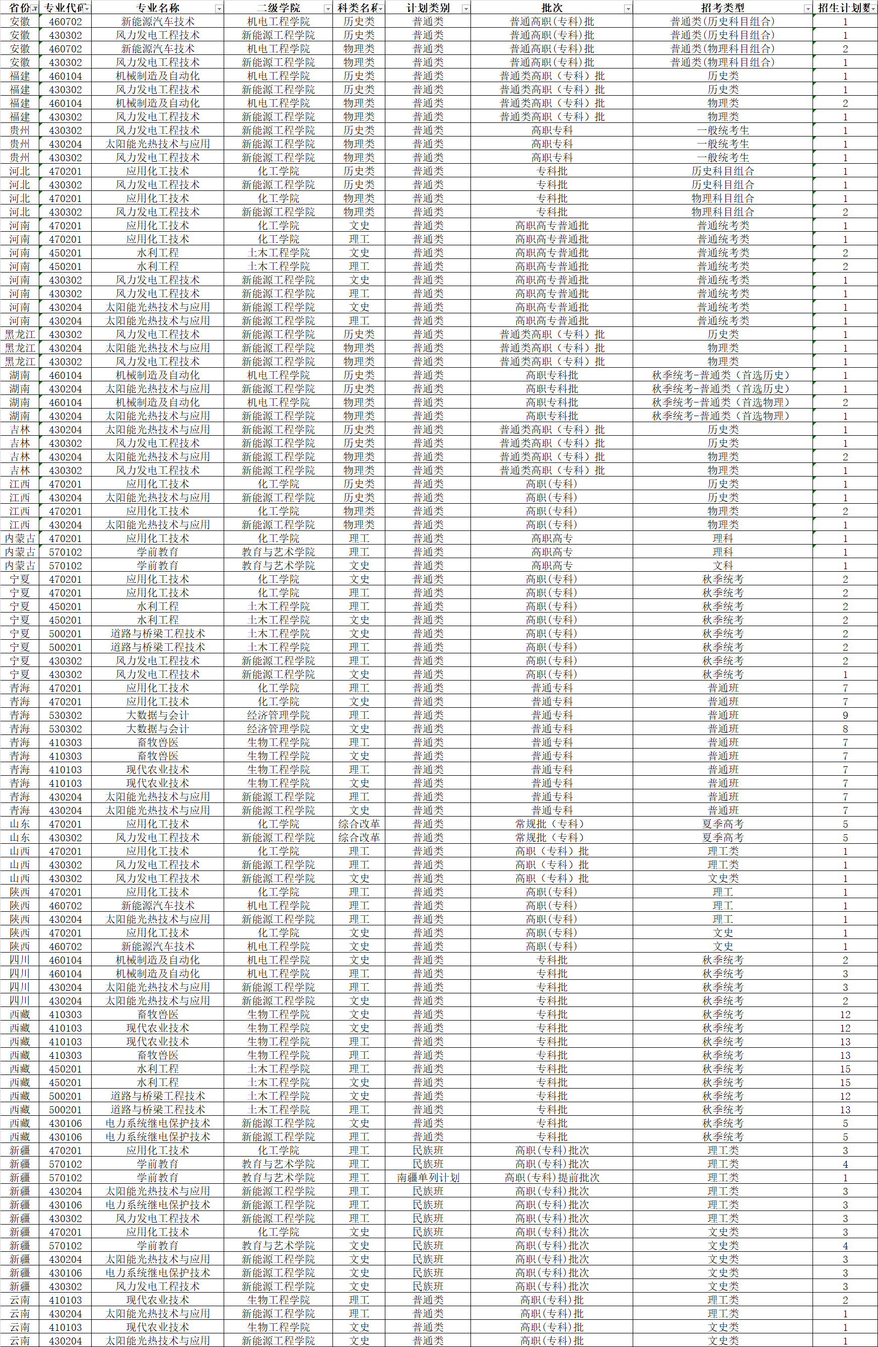 酒泉职业技术学院2024年省外普通高考招生专业及计划